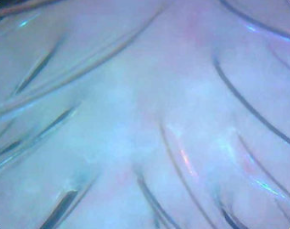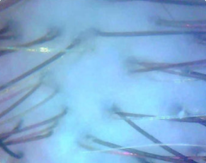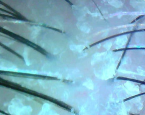 Images de la kératine du cuir chevelu au zoom 60x, avant l’application et après 28 jours d’utilisation régulière.