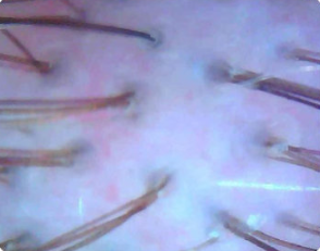 Images de la sensibilité du cuir chevelu au zoom 60x, avant l’application et après 28 jours d’utilisation régulière.